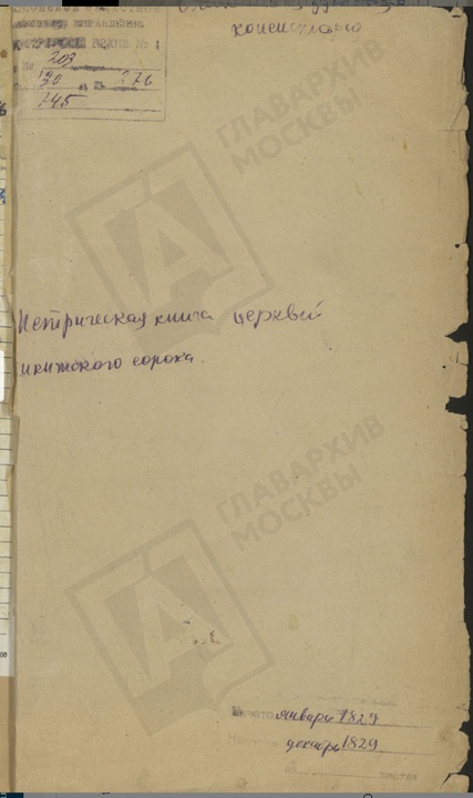1829 год // ЦГА Москвы. Ф. 203. Оп. 745. Д. 276. 1097 л.