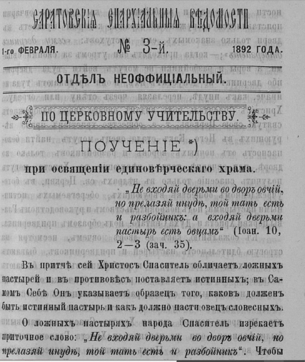 Поучение при освящении единоверческого храма